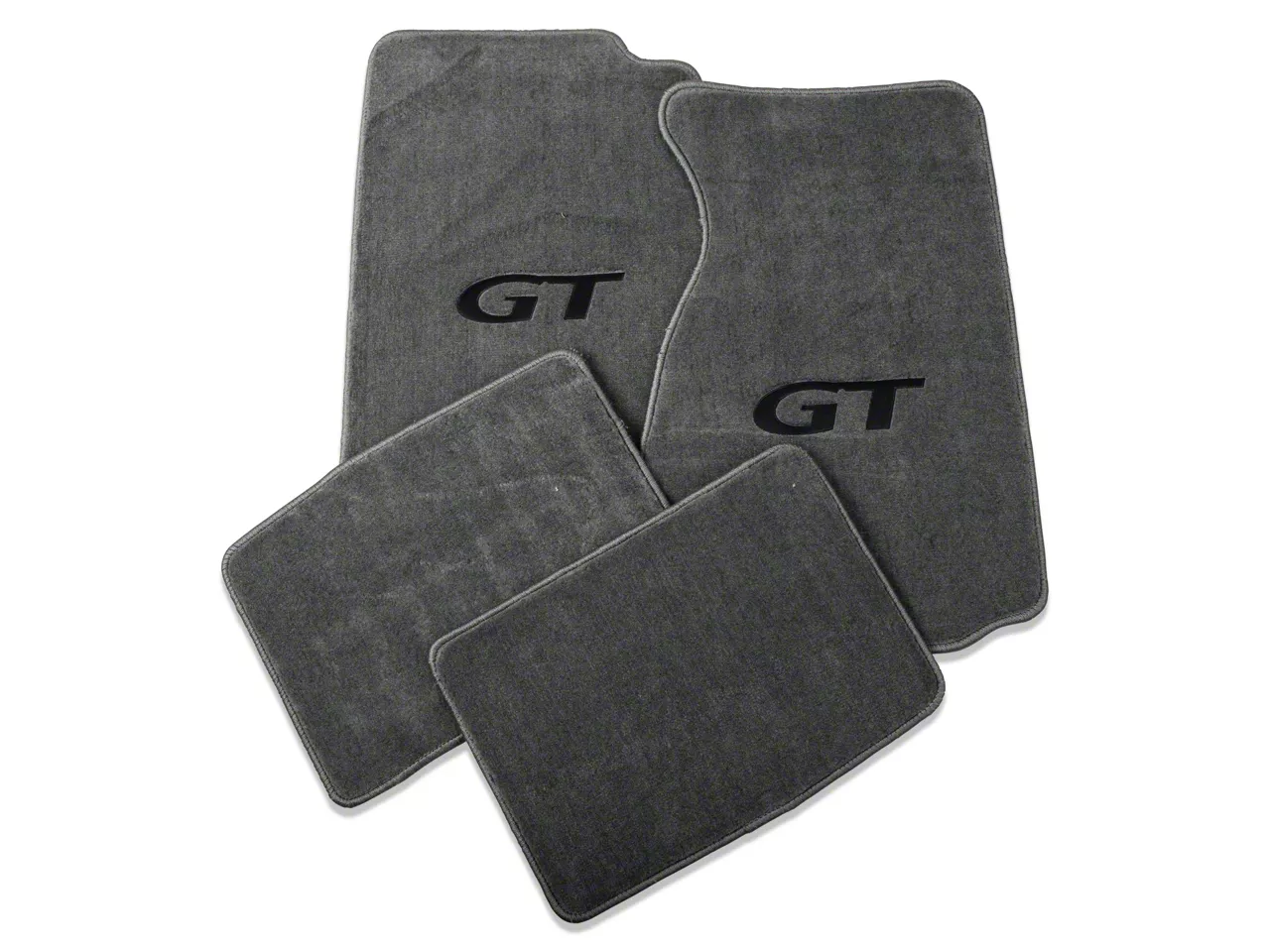 Great Styling. Make your pony's interior look like brand new again with a new set of floor mats from AmericanMuscle. Replace those old worn out floor mats with a set of gray carpeted floor mats featuring the GT logo.