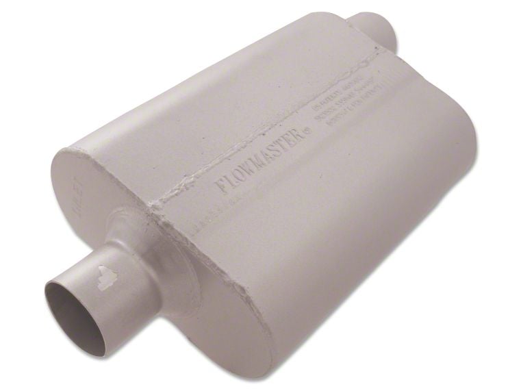 Increases Torque/Horsepower. Is your stock muffler robbing your 'Stang's performance? The two-chamber, precision-deflector design of the Flowmaster 40 Series Delta Flow Center/Offset Oval Muffler supercharges your exhaust, giving you a marked increase in torque and horsepower.