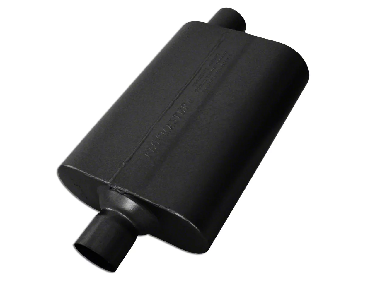 Throaty Sound. Announce your arrival in style with the Flowmaster 50 Series Delta Flow Center/Offset Oval Muffler. This exhaust upgrade gives your Mustang a moderate throaty, natural tone; not loud enough to attract the authorities but enough to let your Pony roar. And, with their proprietary Delta Flow Technology, you'll experience less cabin noise.