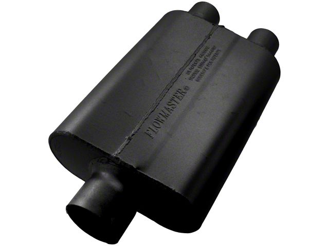 This two-chamber design incorporates Flowmaster's Delta Flow® technology. The Delta deflectors generate increased scavenging for better performance and reduced interior sound. Enjoy a milder exterior tone and reduced interior resonance compared to the standard 40 series. Constructed of 16-gauge aluminized steel and fully MIG welded for maximum durability.
