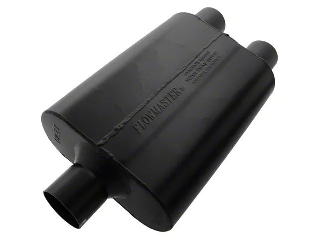Flowmaster Super 44 Series; Center/Dual Out Oval Muffler; 2.50-Inch Inlet/2.50-Inch Outlet (Universal; Some Adaptation May Be Required)
