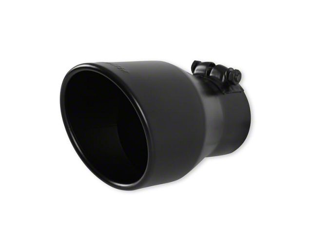 This black ceramic coated tip is a great way to customize your vehicle. Designed for 3.00-inch tailpipes, this 4.500-inch tip is 7.00-inches long, has an angled rolled edge and is finished off with the Flowmaster logo embossed at the end of the tip. This is a clamp on style tip to allow for an easy installation with basic hand tools. Backed by Flowmaster's three year Limited Warranty.