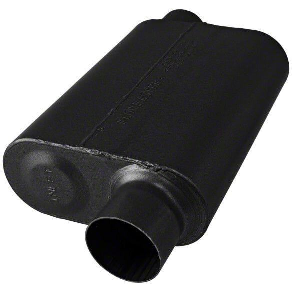 Silent Muffler Action. If you want to give your iron chariot a gentle growl to go with its modified mechanization, the Flowmaster Original 40 Series Offset Oval Muffler would be the perfect addition to your augmentations. It's made to provide a low-drone, low tone muffler sound and a better exhaust gas discharge path for your mean machine.