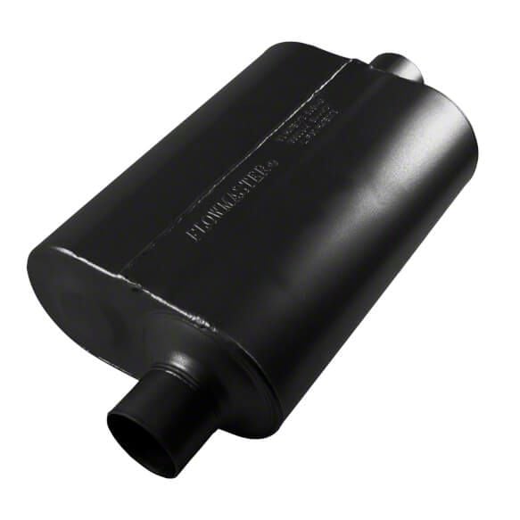 Application. This Flowmaster Super 40 Series Offset/Center Oval Muffler (2.50-Inch Inlet/2.50-Inch Outlet) fits universally without needing major modifications.