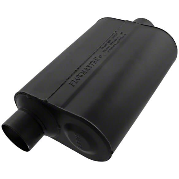 Deep, Powerful Tone. This Flowmaster Super 40 Series Center/Offset Oval Muffler; 2.50-Inch Inlet/2.50-Inch Outlet significantly upgrades the exhaust performance and sound of your Dodge Charger. It equips your car with a larger case that delivers increased power and torque. Also, its chambered interior provides a deep and powerful exhaust tone with reduced resonance, making your performance car roar with impressive quality.