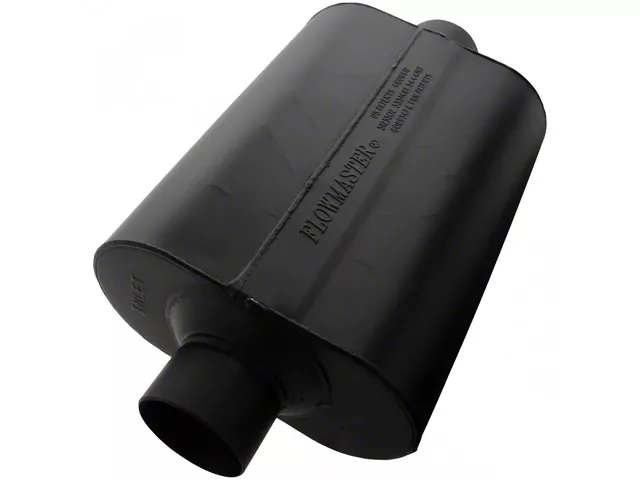 Developed from our Top Ten race muffler lineup for use on the street/strip, the Super 40® features Flowmaster's Delta Flow® technology. Its larger case profile provides the best of both worlds of performance and sound, especially on forced induction and high-horsepower vehicles. The Super 40 has that deep, powerful sound of the Original 40 series but with all the benefits of performance and low interior resonance from Delta Flow® technology. Constructed of 16-gauge aluminized steel and fully MIG welded for maximum durability.