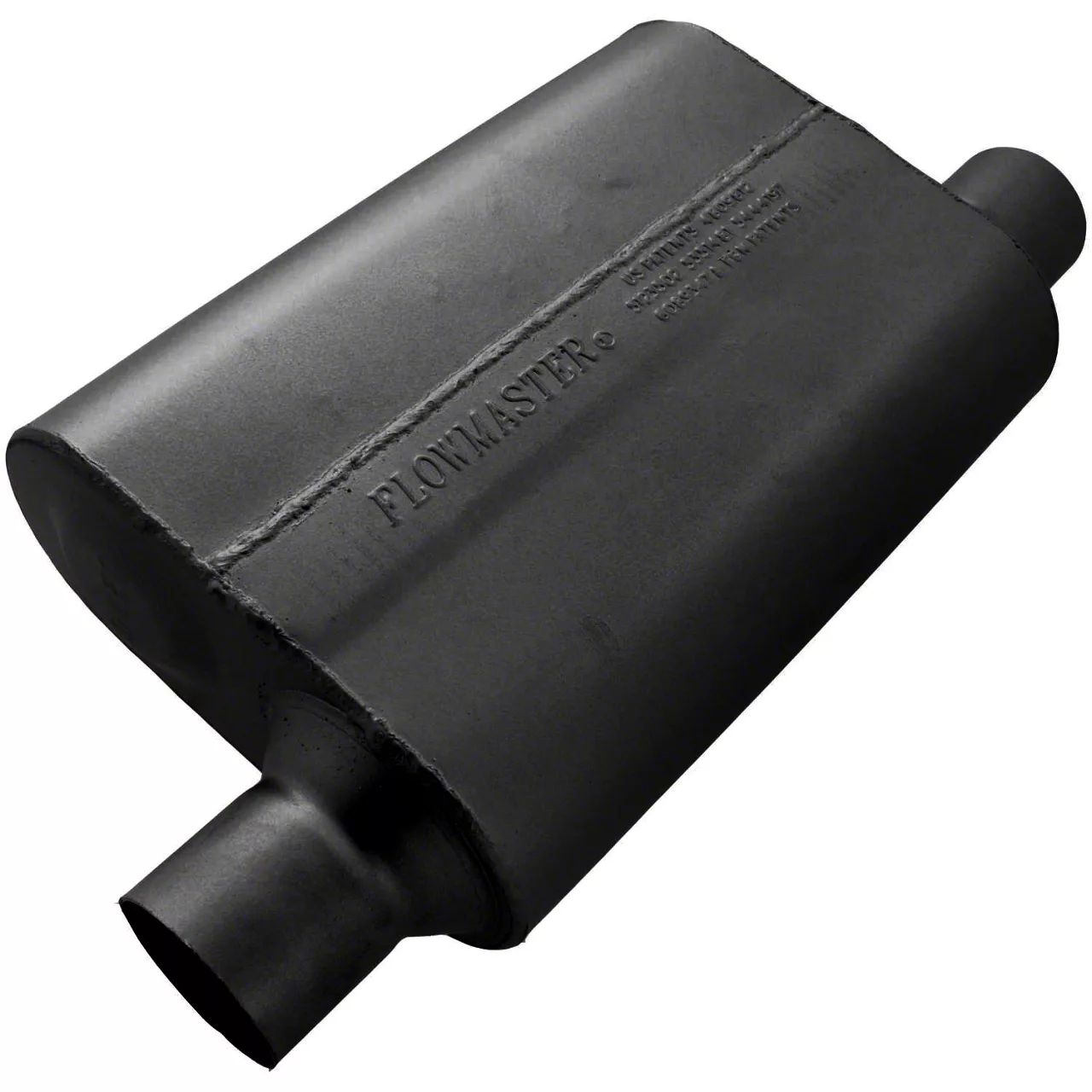 Performance Muffler. The Flowmaster 40 Series Delta Flow Offset/Offset Oval Muffler; 2.50-Inch Inlet/2.50-Inch Outlet is designed to deliver an aggressive sound with superior exhaust gas scavenging. It is engineered for use in street, strip, and off-road applications where enhanced performance and reduced interior sound are desired, making it an excellent upgrade for muscle cars, street rods, trucks, and SUVs.