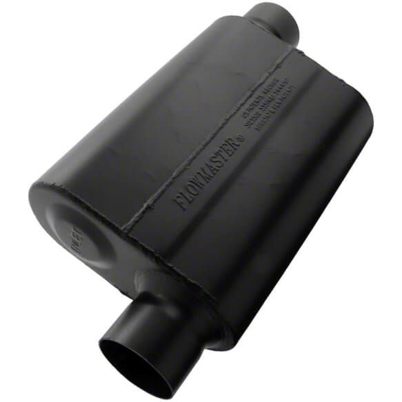 High-Performance Part. The Flowmaster Super 44 Series Offset/Offset Oval Muffler will help you take the performance of your vehicle to the next level. With MaxPower Gains of Up to 12.4 hp and 13.8 pound/ft of Torque, this Center/Dual Out Oval Muffler was designed to provide additional power for your vehicle.