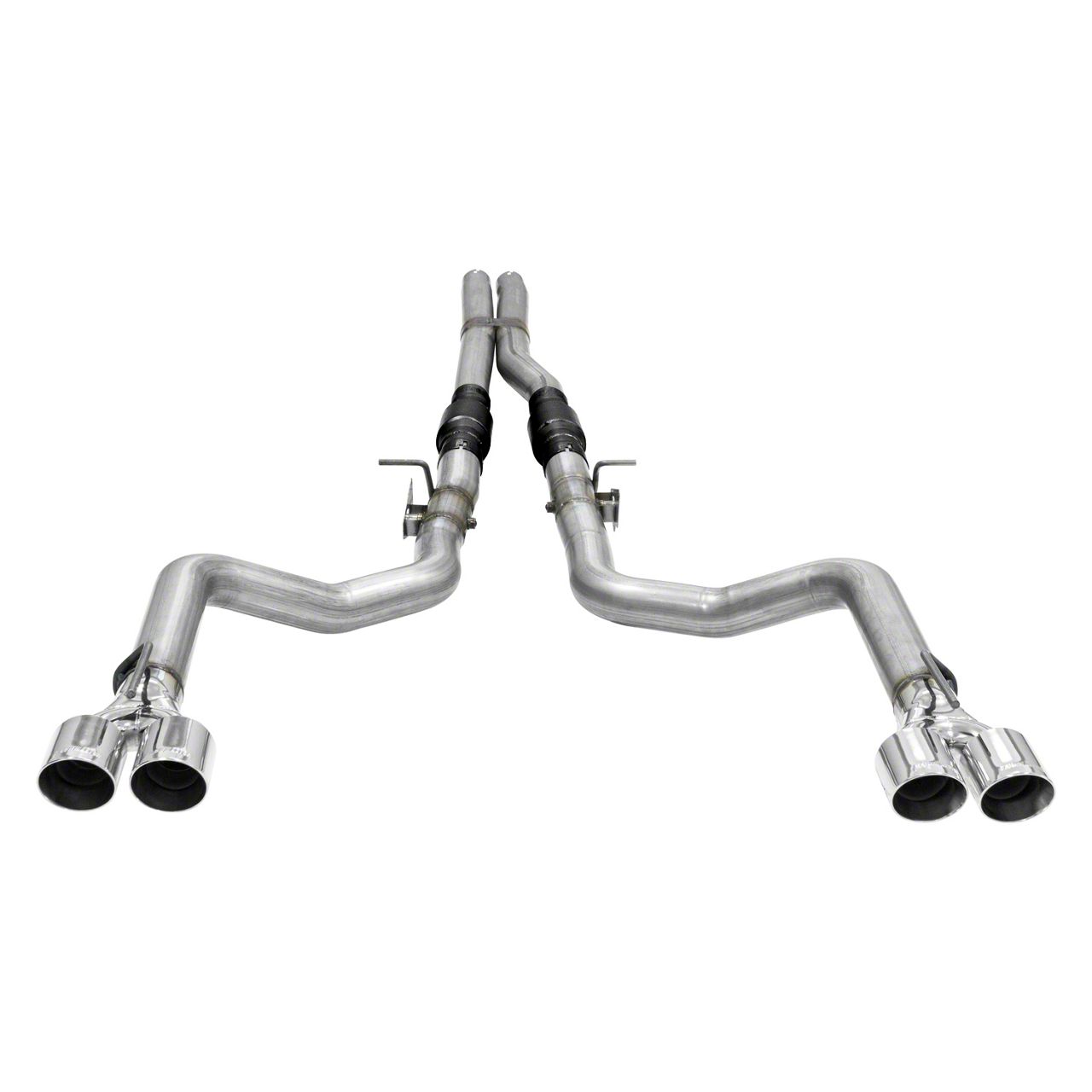 Moderate/Aggressive Exhaust Tones. This Flowmaster Outlaw Cat-Back Exhaust assembly is designed to offer a very aggressive wide open exterior exhaust tone during acceleration and a moderate interior and exterior sound level during cruise. With this exhaust system, you get head-turning exhaust tones without the annoying rasp and drone in the cabin.