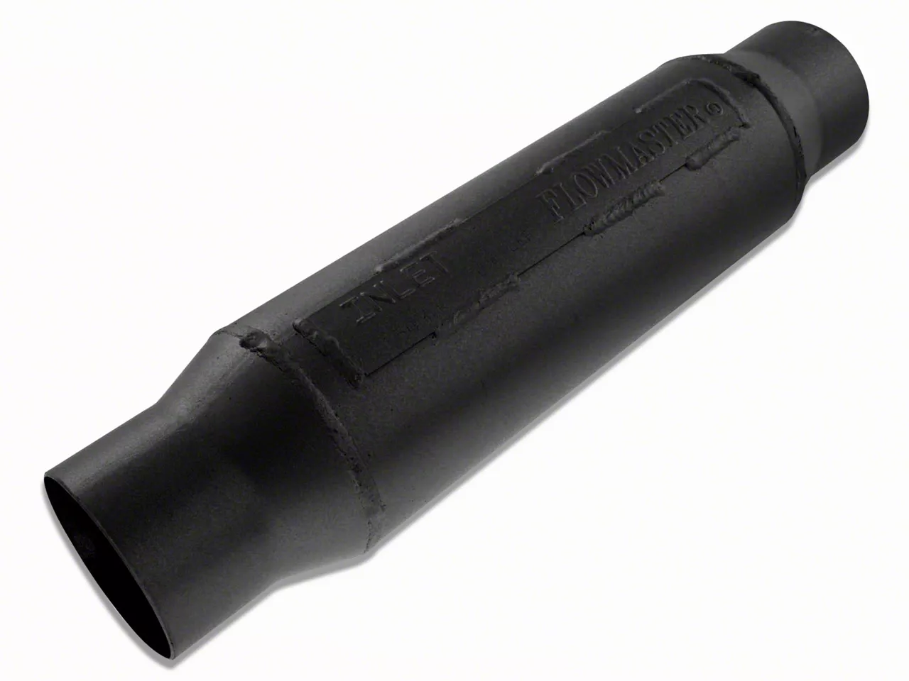 Matte Black-Finished Aluminized Steel. Finished in a protective black coating, these individually-sold mufflers are corrosion-resistant and will give your Mustang an aggressive look. The matte black outer layer is a smart choice for rust-resistance. It adds to the Aluminized Steel's strength and will keep your Flowmaster Outlaw Race Muffler in prime condition, even when you're flooring it on the track.
