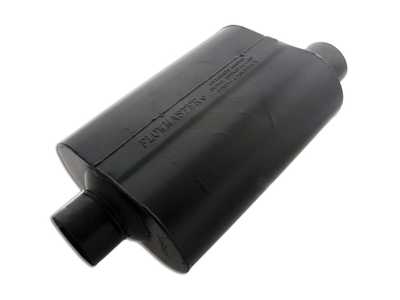 Reach Your Hot Rod Potential. The Flowmaster Super 40 Series Center/Offset Oval Muffler (3”) offers a massive improvement on the old, two-chamber mufflers by increasing airflow significantly. Proving their potential to boost performance on dyno test after dyno test, the Flowmaster Super 40 Series mufflers are the ideal modification to increase horsepower, torque, and gas mileage. Flowmaster has taken all the excellent features of their 40 Series mufflers and kicked them up a notch for the Super 40 Series, adding innovative Delta Flow technology and premium design that is modeled off of Flowmaster’s famous race mufflers.
