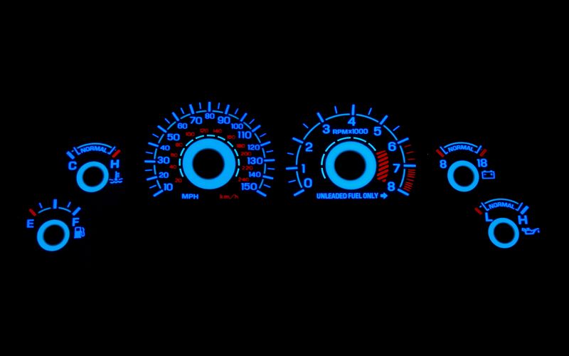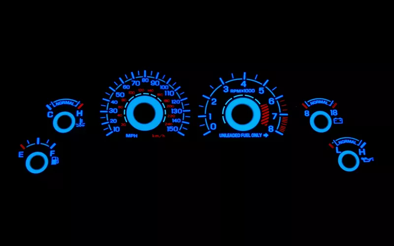 Easy to Read. By day the gauge face is white with crisp clean markings, but by night the numbers glow bright blue, making these gauges distinctive and easy to read.