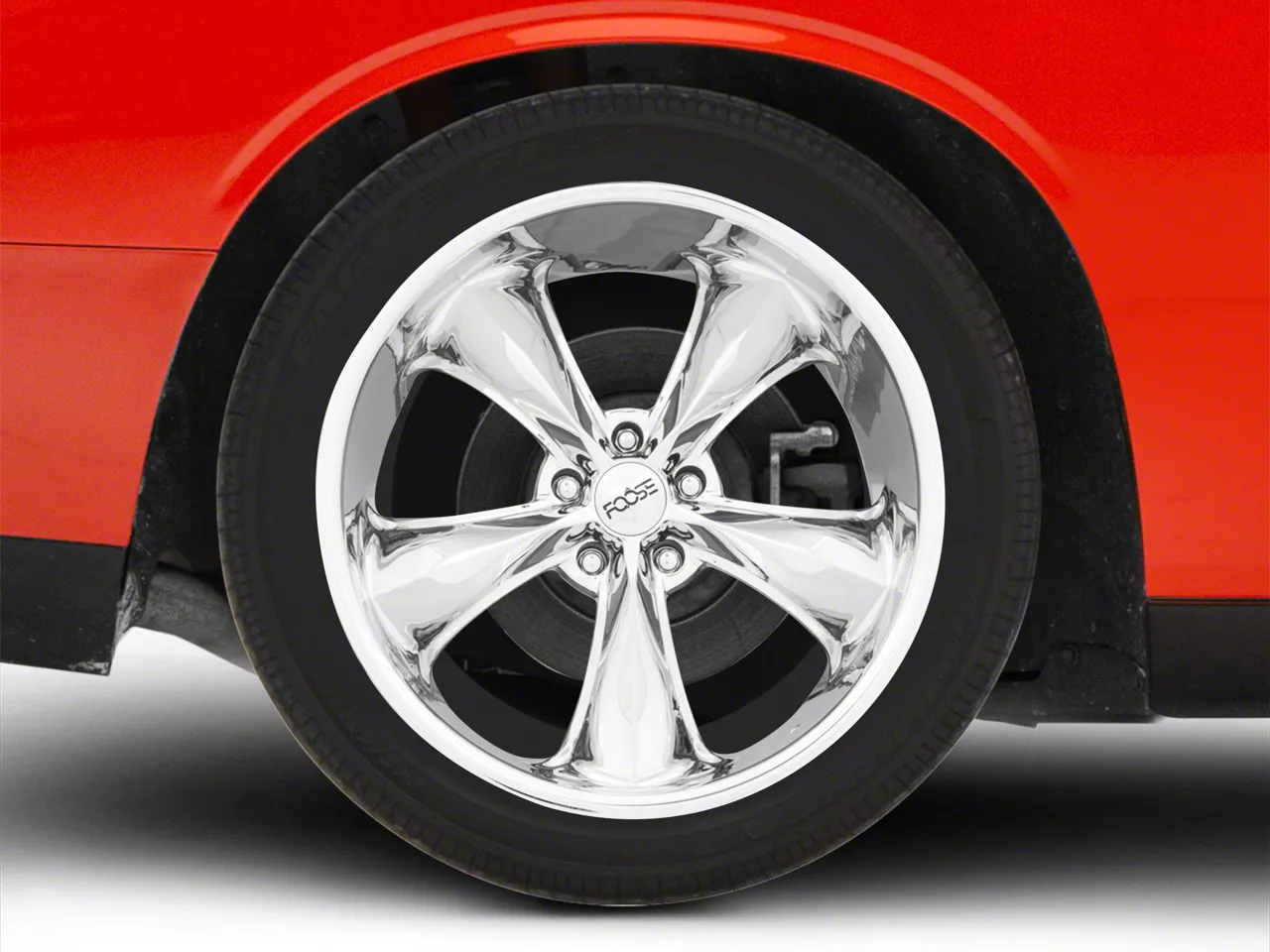 Application. This Foose Legend Chrome Wheel; Rear Only; 20x10 with a backspace of 6.288 Inch, 159.8mm and bolt pattern of 5 x 115mm (5 x 4.52756-Inch) ensures impeccable alignment and unmatched driving stability. Specifically designed for 2008-2023 RWD Challenger models, each wheel is sold individually.
