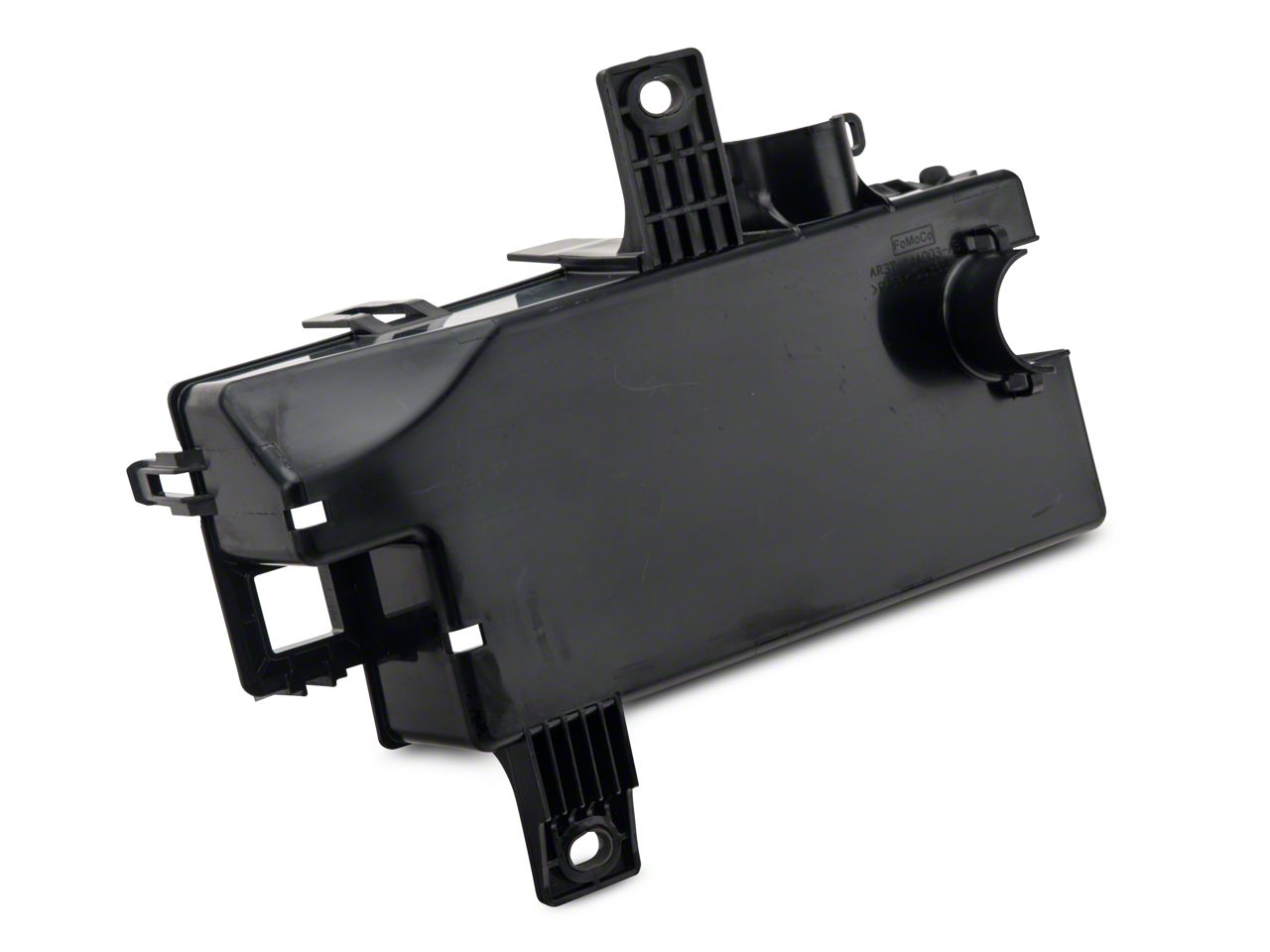 Direct Replacement. Keep your engine bay looking its best by replacing your Lower Fuse Box Cover with a Ford original replacement. Get rid of that damaged, faded or worn down cover, drawing unwanted attention from onlookers when your hood is popped. It's no question things wear out and this OE lower fuse box cover is perfect for breathing new life into your 2010-2014 Mustang engine bay.