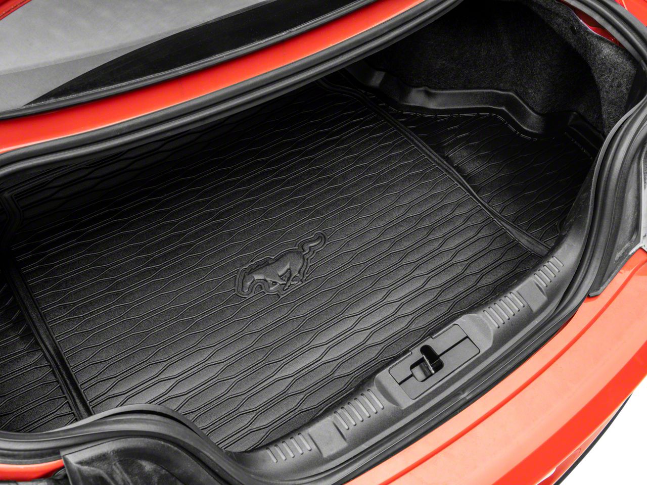 Application. The Ford Cargo Area Protector with Embossed Pony Logo; Black is designed to fit 2015-2023 Ford Mustang models without a Subwoofer.