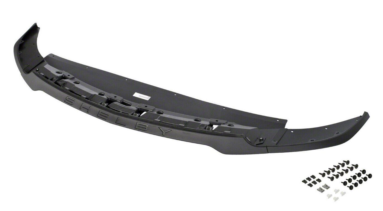 Shelby Logo. Ford manufactured this chin splitter with its signature embossed Shelby logo designed to provide a direct match for your OEM chin splitter. As a result, this chin splitter offers a fresh appearance to your Mustang by replacing your worn, cracked, or otherwise damaged front chin splitter.