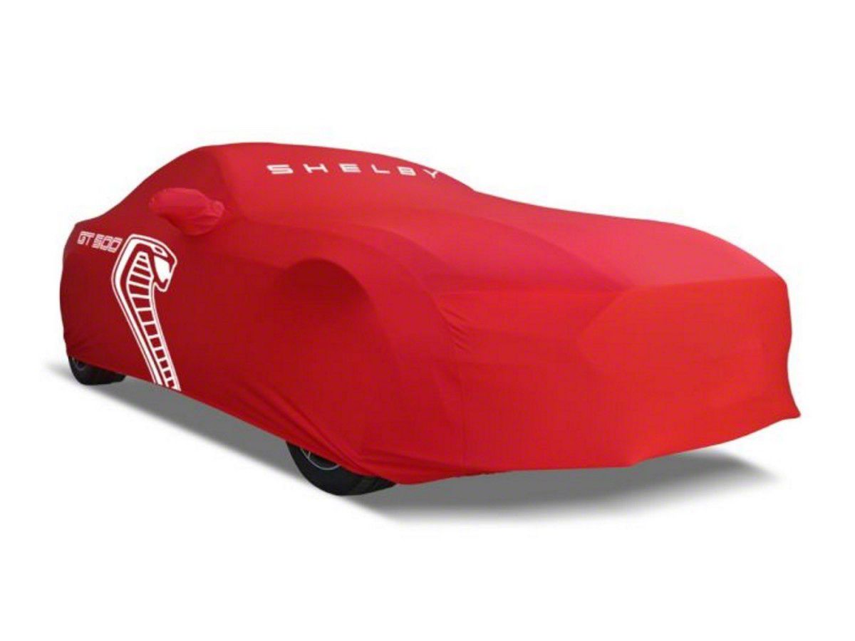 Genuine Ford Product. Made for the Ford Mustang GT500 with a track pack spoiler, this genuine Ford Indoor Full Car Cover comes in a racing red finish and is meant to protect your parked ride against dust and dirt. Built using fleece-lined breathable fabric with elasticized front and rear edges, this cover has a double-needle sewn 3-piece construction.