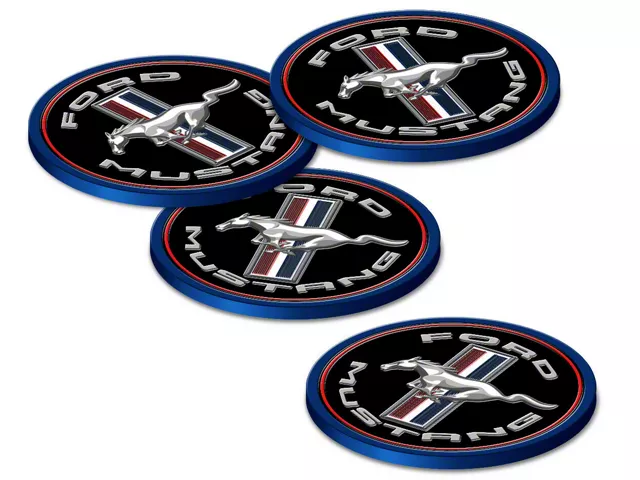 Mustang Themed Drink Coasters. Protect your table's surface when enjoying a cold beverage with this Mustang themed Drink Coaster Set. Made from non-slip, contoured rubber, these Coasters feature the Tri-bar Running Pony logo in red, white and blue making them the ideal conversation starter.