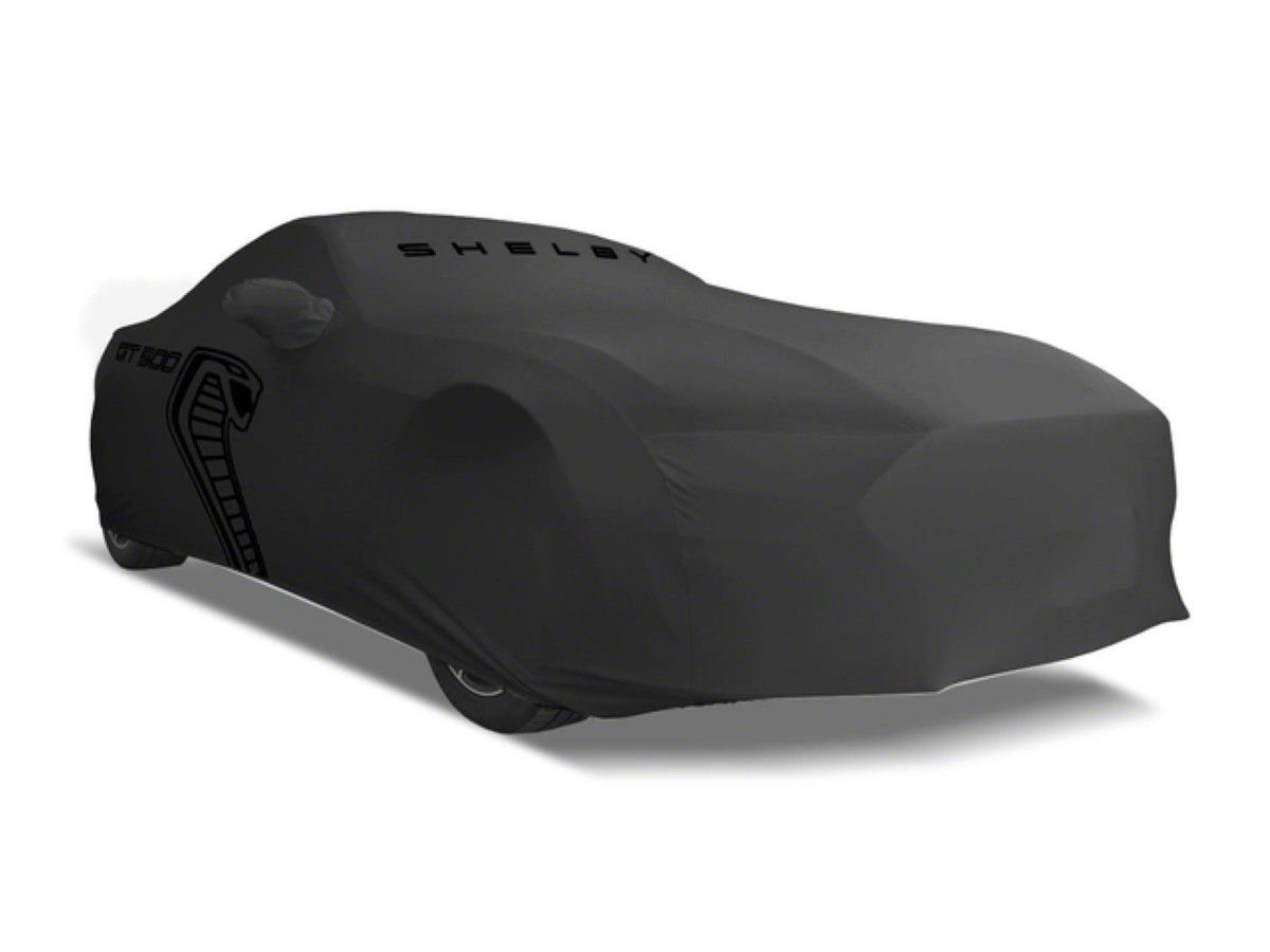 Genuine Ford Product. Introducing the Ford Outdoor Full Car Cover in sleek gray, a genuine Ford product designed to keep your vehicle shielded from the elements while adding a touch of style. This custom-fit car cover boasts mirror pockets for a snug fit and proudly displays the Cobra Logo, Shelby Script, and GT500 Script, showcasing your Ford pride. This Ford Outdoor Full Car Cover features overlapped seams and waterproof heavy wax-coated thread, ensuring durability and long-lasting protection.