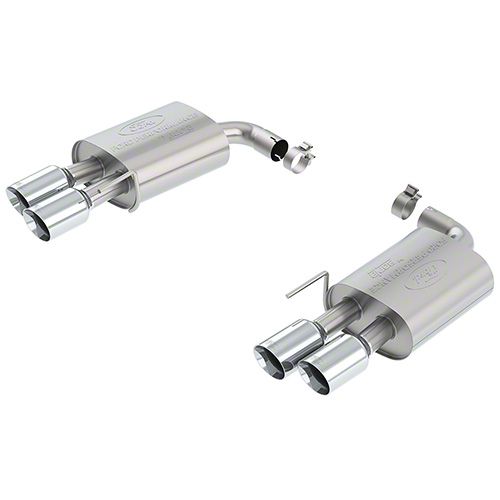 Premium Construction. Ford Performance by Borla made its Axle-Back Exhaust System from the finest austenitic 304 stainless steel that exhibits exceptional tensile strength. This high-grade material has successfully passed the tremendous temperature and pressure tests to ensure its highest quality. As a result of these first-rate research and development efforts, Ford Performance by Borla produced exhaust systems that can withstand extreme temperatures from catalytic activities and resist harsh corrosive attacks from the exhaust gases. Furthermore, the exhaust tips reinforce the Mustang’s attractive exterior with its refined, chrome finish.