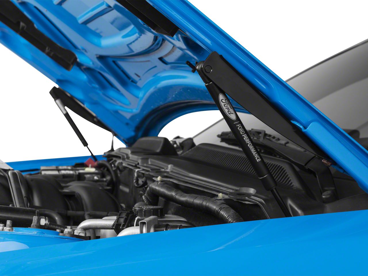 Necessary Upgrade. Most Ford Mustang models still include a factory manual hood prop, which can be an eyesore when you want to show off your Mustang’s powerhouse. However, you can upgrade the look of your Mustang by installing a Ford Performance Strut Kit with the Ford Performance logo. This hood strut kit uses two gas struts to perfectly lift and hold your hood open while eliminating the use of your factory prop-rod.