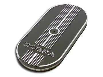 Not an Ordinary Air Filter. Any air filter can boost horsepower and acceleration by filtering out airborne junk and promoting high airflow. The Ford Performance Oval Air Cleaner w/Cobra Logo does all that very well. What makes it special is that it jazzes up the engine bay on your 1979-1985 Ford Mustang. This is because of its cool, flat oval shape, its matte black color, and the raised Cobra logo on the top.