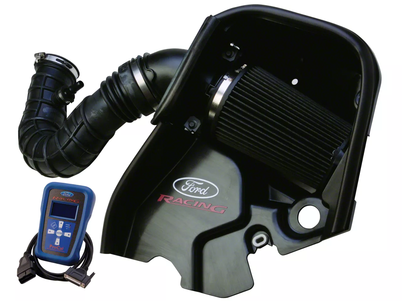 Utilizing OEM quality components the Ford Racing Cold Air Intake Kit mounts in the factory location and features a high flow molded plastic bucket with a unique air tube that provides an enhanced intake sound.