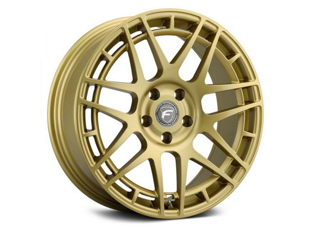 This 18x8.5 Forgestar F14C Semi Concave Gloss Gold Wheel is completed in a high-quality gold finish that will be the envy of everyone. There's a durable clear coat to protect against the hazards of driving.One-Piece Cast Aluminum Construction. This wheel is manufactured using gravity casting. Gravity casting is the process of pouring a molten aluminum alloy into a wheel mold or form utilizing the earth's own gravity to help fill the mold. The result is a strong, durable wheel that has the same good looks as a more expensive wheel, at a fraction of the price.