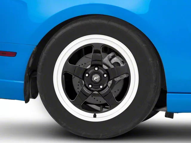 Application. This Forgestar D5 Drag Black Machined Wheel; Rear Only; 18x10 with a backspace of 7.154 Inch, 181.8mm and bolt pattern of 5 x 114.3mm (5 x 4.5-Inch) ensures impeccable alignment and unmatched driving stability. Specifically designed for 2010-2014 Mustang models, each wheel is sold individually.