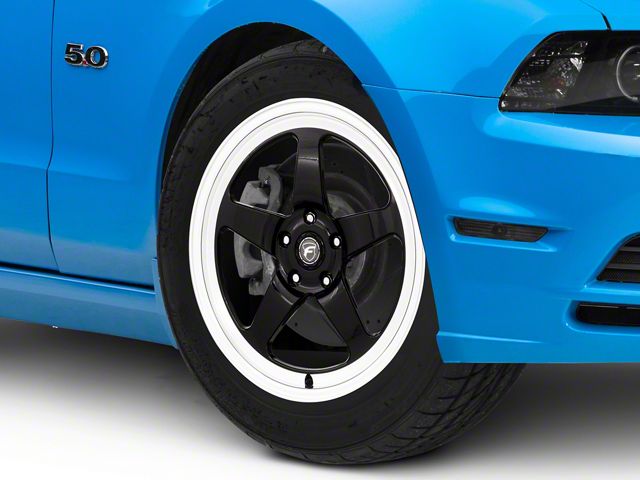 Application. This Forgestar D5 Drag Black Machined Wheel; Front Only; 18x5 with a backspace of 2.095 Inch, 53.3mm and bolt pattern of 5 x 114.3mm (5 x 4.5-Inch) ensures impeccable alignment and unmatched driving stability. Specifically designed for 2010-2014 Mustang models, each wheel is sold individually.