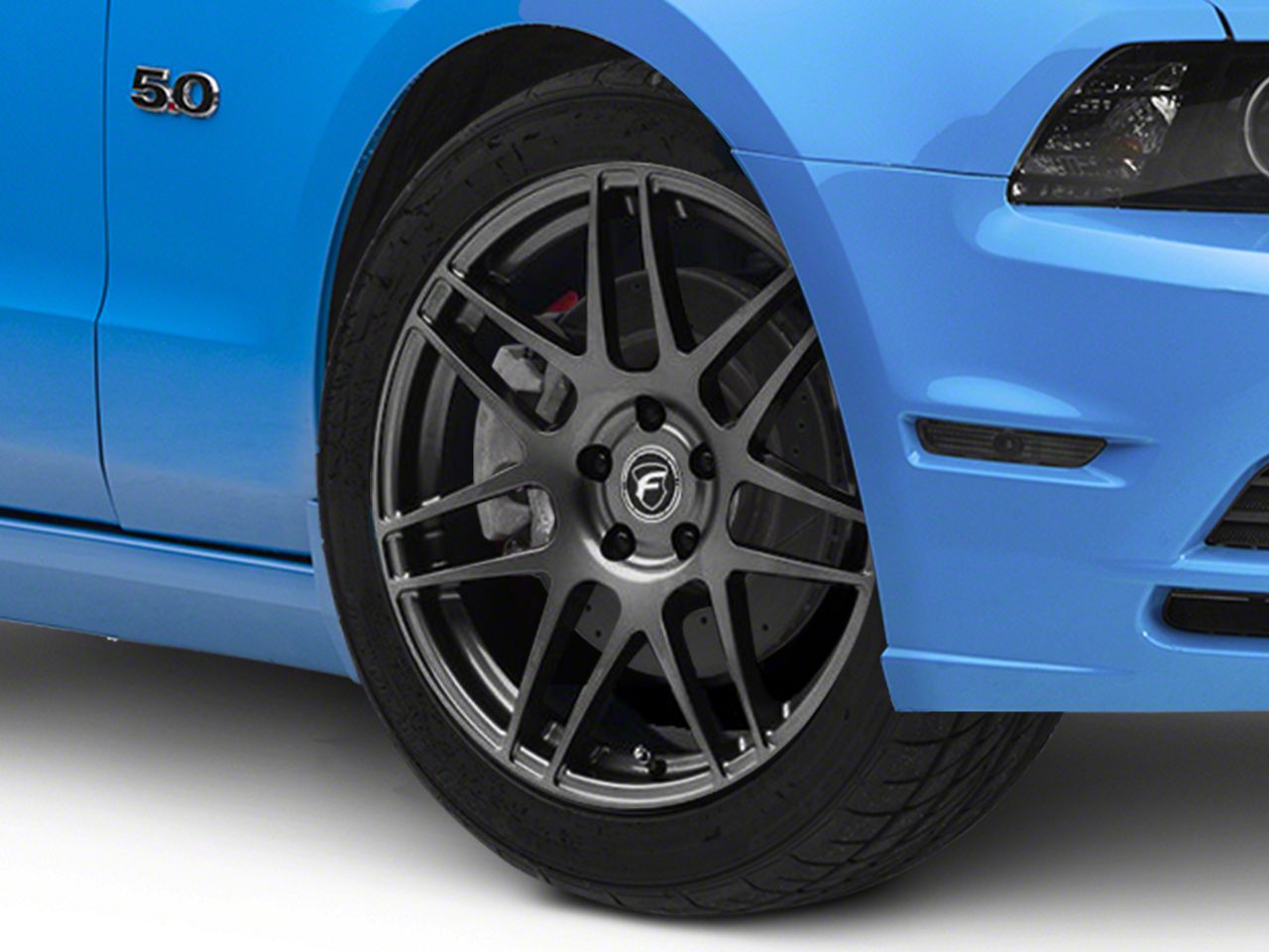 Application. This Forgestar F14 Monoblock Gunmetal Wheel; 19x9 with a backspace of 6.378 Inch, 162.1mm and bolt pattern of 5 x 114.3mm (5 x 4.5-Inch) ensures impeccable alignment and unmatched driving stability. Specifically designed for 2010-2014 Mustang models, each wheel is sold individually.
