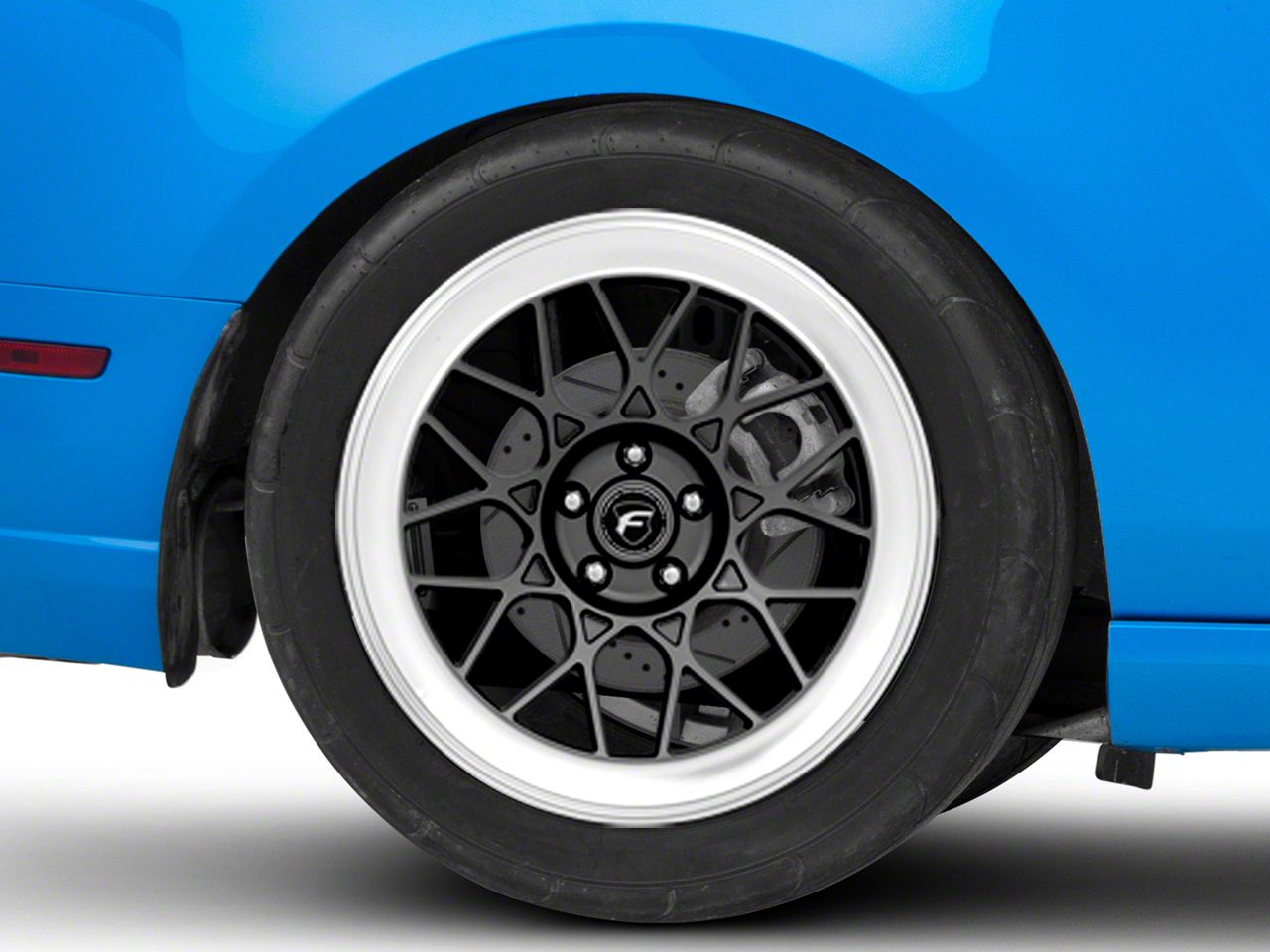 Application. This Forgestar S18 Black Machined Wheel; 19x11, with a backspace of 8.205 Inch, 208.5mm and a bolt pattern of 5 x 114.3mm (5 x 4.5-Inch), is designed to enhance alignment and driving stability. It's specially designed to fit the 2010-2014 Mustang models, sold individually.