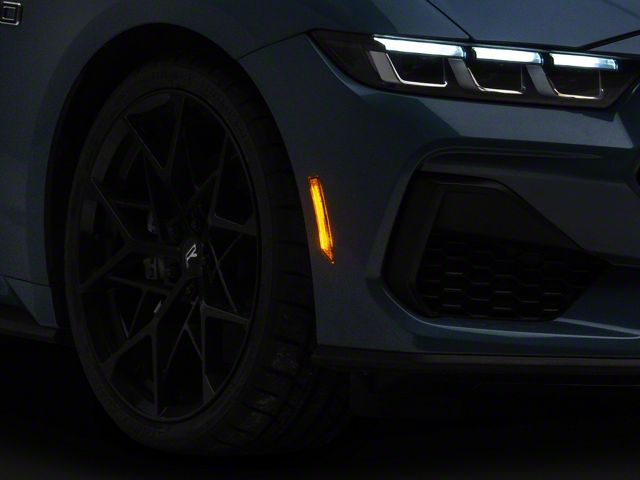 Sleek and Modern Illumination. The Form Lighting LED Side Marker Lights provide a stylish and functional upgrade for 2024-2026 Ford Mustang models. Designed with a clear transparent polycarbonate lens and matte black housing, these side markers enhance visibility while giving your vehicle a sleek, modern appearance.