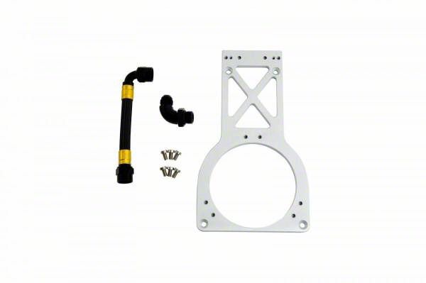 Construction and Appearance. Featuring a durable raw metal finish, each component in this kit is crafted to withstand demanding performance environments. The included floor mount bracket offers strong, stable support, while the hose assembly and 90-degree fitting provide optimal routing for fuel lines. Every part is precision-manufactured to meet Fuelab’s high-quality standards, ensuring long-term resistance to corrosion and mechanical stress.