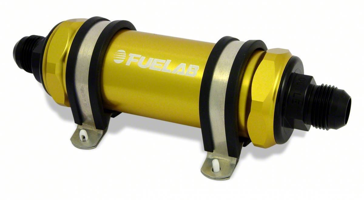 8AN inlet/outlet Fuelab filter with long (5 inch) 100 micron / Stainless Steel Element
