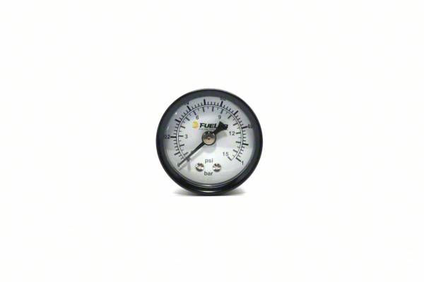 Fuelab 1.5 Inch Fuel Pressure Gauges Carbureted Dual BAR/PSI Scale Range: 0-15 PSIAccessory Features:Black Casing1.5 Inch Diameter White Face, with Black Text1/8-NPT Direct MountFor reference use on Regulators or Fuel Rails with Gauge PortsNot for