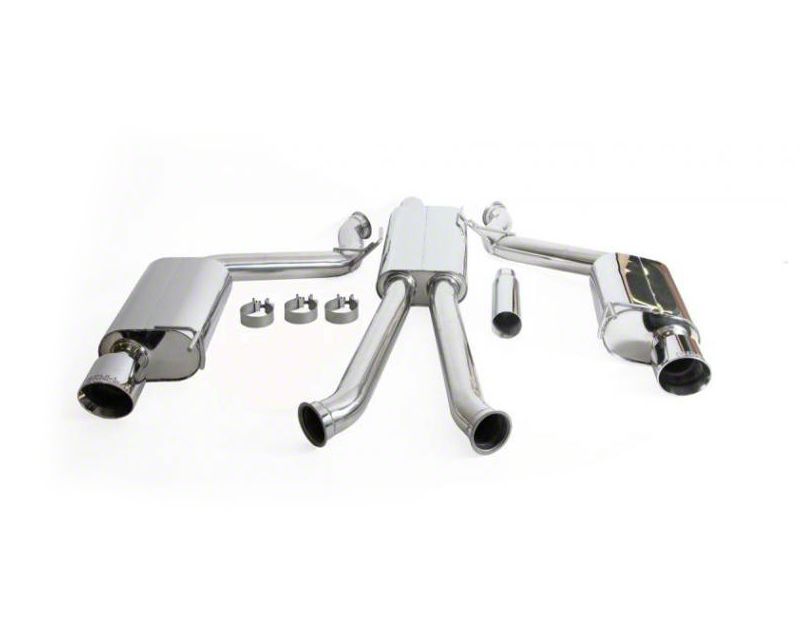 Performance Enhancement and Aesthetic Appeal. The Full Race Street Cat-Back Exhaust System is designed specifically for 2015-2023 Mustang EcoBoost models that do not have active exhaust systems. This system includes 2 polished chrome finish tips and is crafted from 3-inch stainless steel tubing, ensuring durability and corrosion resistance. The triple muffler design is not only functional in reducing exhaust noise but also enhances the overall aesthetic with its polished chrome finish.