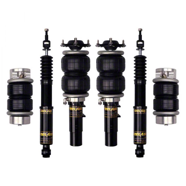 Premium Functional Design. The Function & Form FeelAir Type Five Adjustable Air Strut Kit is a top-of-the-line product designed to improve your vehicle's handling and performance. It features double bellows air springs with a reinforced girdle hoop, ensuring maximum durability and longevity. The fully threaded damper body allows for easy adjustments, while the 32-step adjustable damping spectrum allows for precise tuning of your vehicle's suspension. With its advanced technology and high-quality construction, this air strut kit is designed to improve road handling and provide a smoother ride quality.