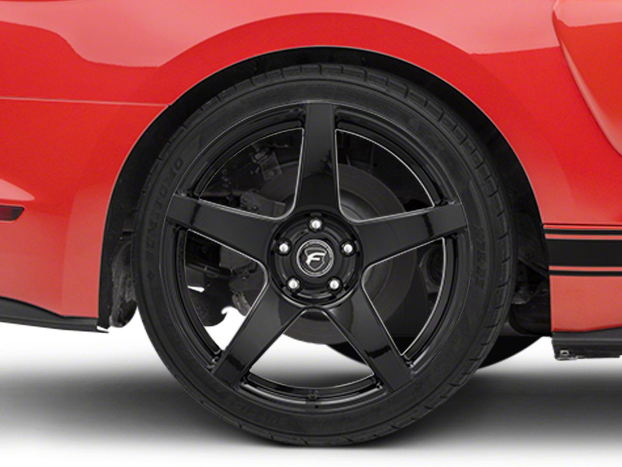 Application. This Forgestar CF5 Monoblock Piano Black Wheel; 19x10, with a backspace of 7.154 Inch, 181.8mm and a bolt pattern of 5 x 114.3mm (5 x 4.5-Inch), is designed to enhance alignment and driving stability. It's specially designed to fit the 2015-2023 Mustang EcoBoost, V6 models, sold individually.