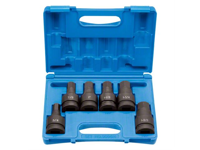 Impact Hex Bit Socket Set, 1 in.; Drive, 6 Piece, 3/4 in.; to 1-3/8 in.; Hex Bits, 4 in.; Long, in Blow Molded Case. Our impact sockets grip the fastener across a broader contact area, reducing chance of rounding off fasteners. They also allow up to 20% more torque to be applied than on other impact sockets. The shift in pressure allows us to reduce the socket wall thickness, increasing access to tight areas.