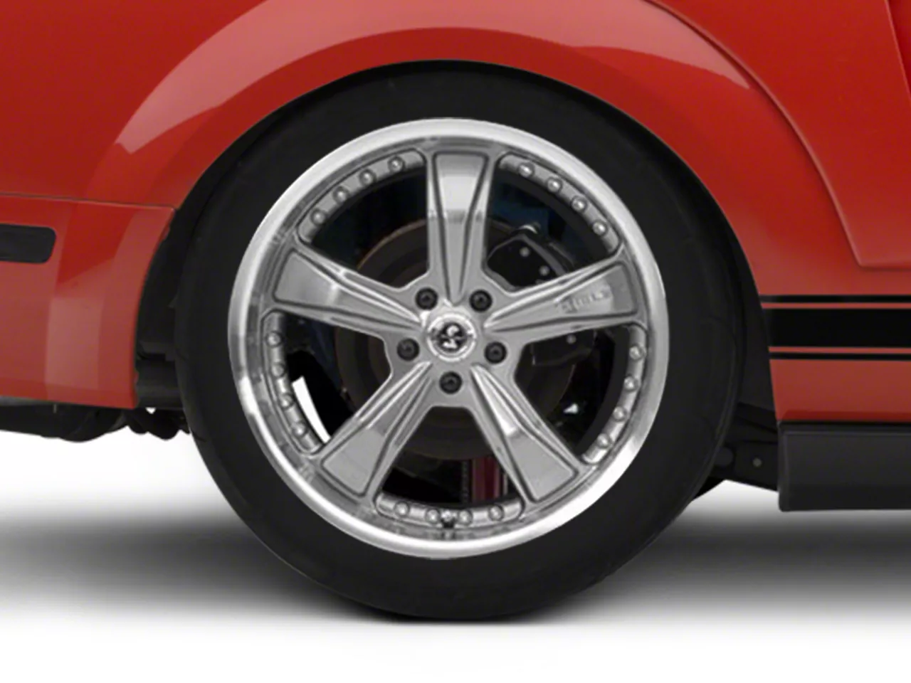 Application. This Shelby Razor Gunmetal Wheel; Rear Only; 20x10 with a backspace of 7.39 Inch, 187.8mm and bolt pattern of 5 x 114.3mm (5 x 4.5-Inch) ensures impeccable alignment and unmatched driving stability. Specifically designed for 2005-2009 Mustang models, each wheel is sold individually.