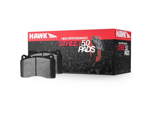 Superior Braking Power. The Hawk Performance 5.0 Front Brake Pads are the effective yet inexpensive way to give your car boost in its stopping power without doing a complete brake upgrade. The pads raise the stopping power with an impressive 20 to 40% more than other pads in the market. They also provide a consistent feel on the pedal to assure you that they are always ready when you need them.