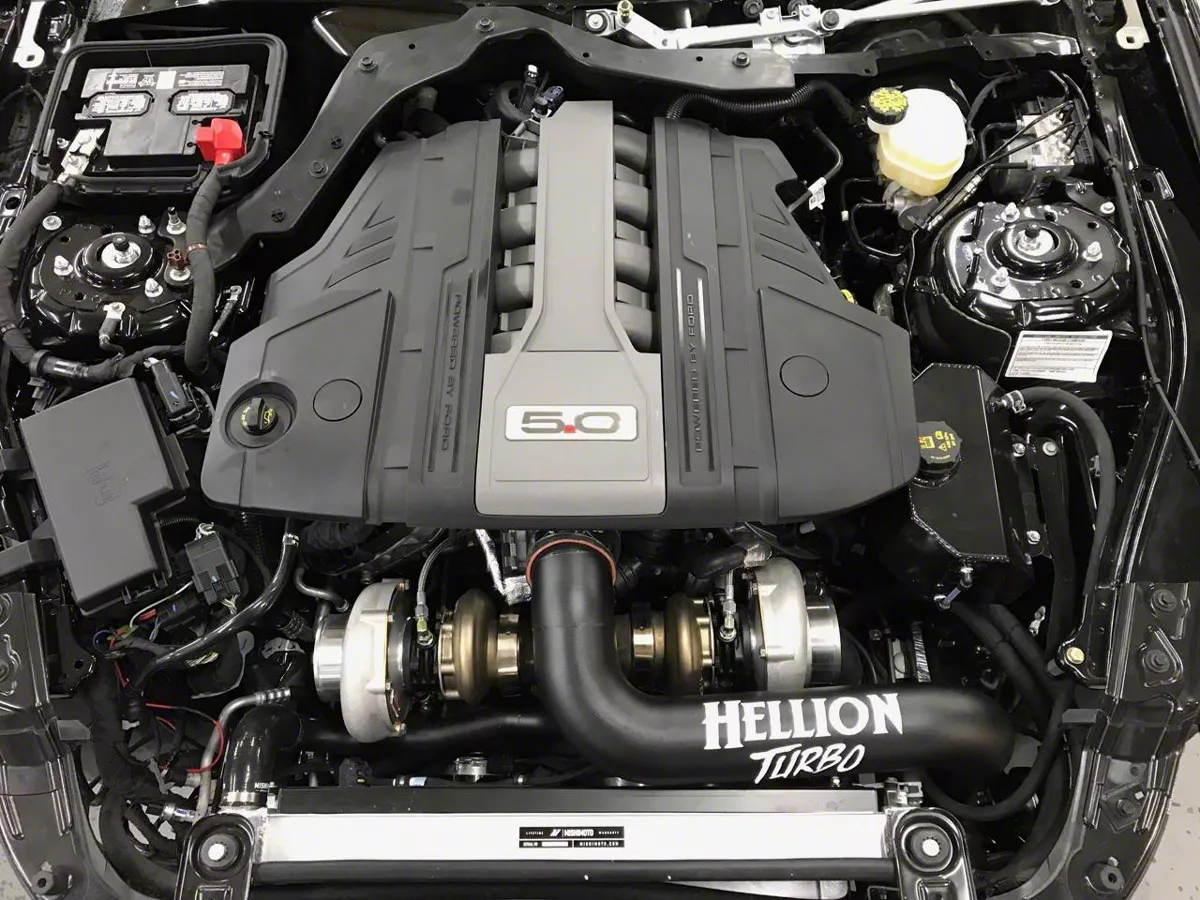 Application.The Hellion Top Mount Twin 55mm Turbo Tuner System fits 2018-2023 Ford Mustang GTs.