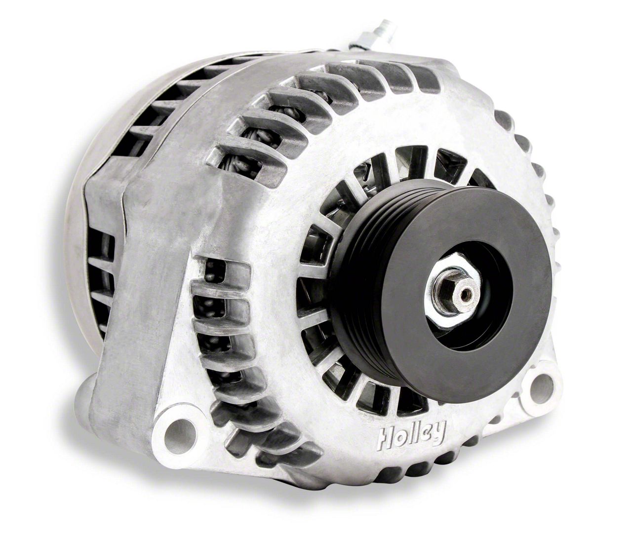With performance engines pushing redlines up higher and higher, alternators are being forced beyond their design. Holley’s premium alternators are specially designed to tolerate 30% higher RPMs than conventional alternators and made in the USA. If you drag race, auto-cross, or just hot-rod your ride, know this alternator won’t fly apart on you. Inside the attractive Holley housing is cutting edge technology. Every component was developed to produce cleaner, more efficient output compared to conventional alternators. Efficiency means you get more from a compact package. GM recently adopted this technology for the 2014 and later Corvettes. The attention to cosmetic detail on these units is above and beyond what you would expect too. The entire outside housing has been sculpted for a smooth s