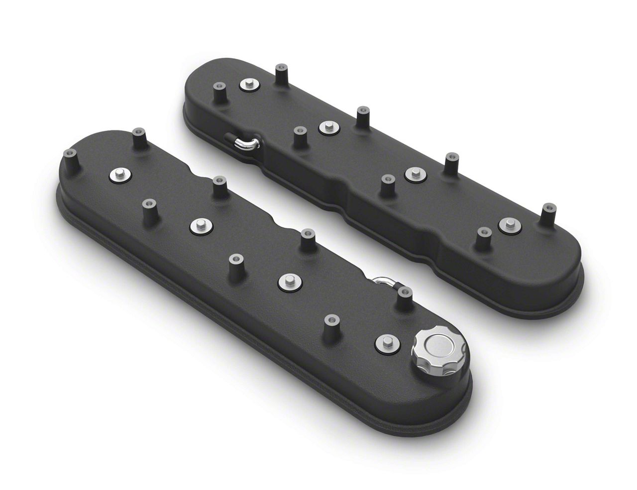 Construction and Appearance. These covers are engineered from cast aluminum and sport a satin black finish. They come ready for installation with an OE style baffle and ventilation system and a billet aluminum oil fill cap.