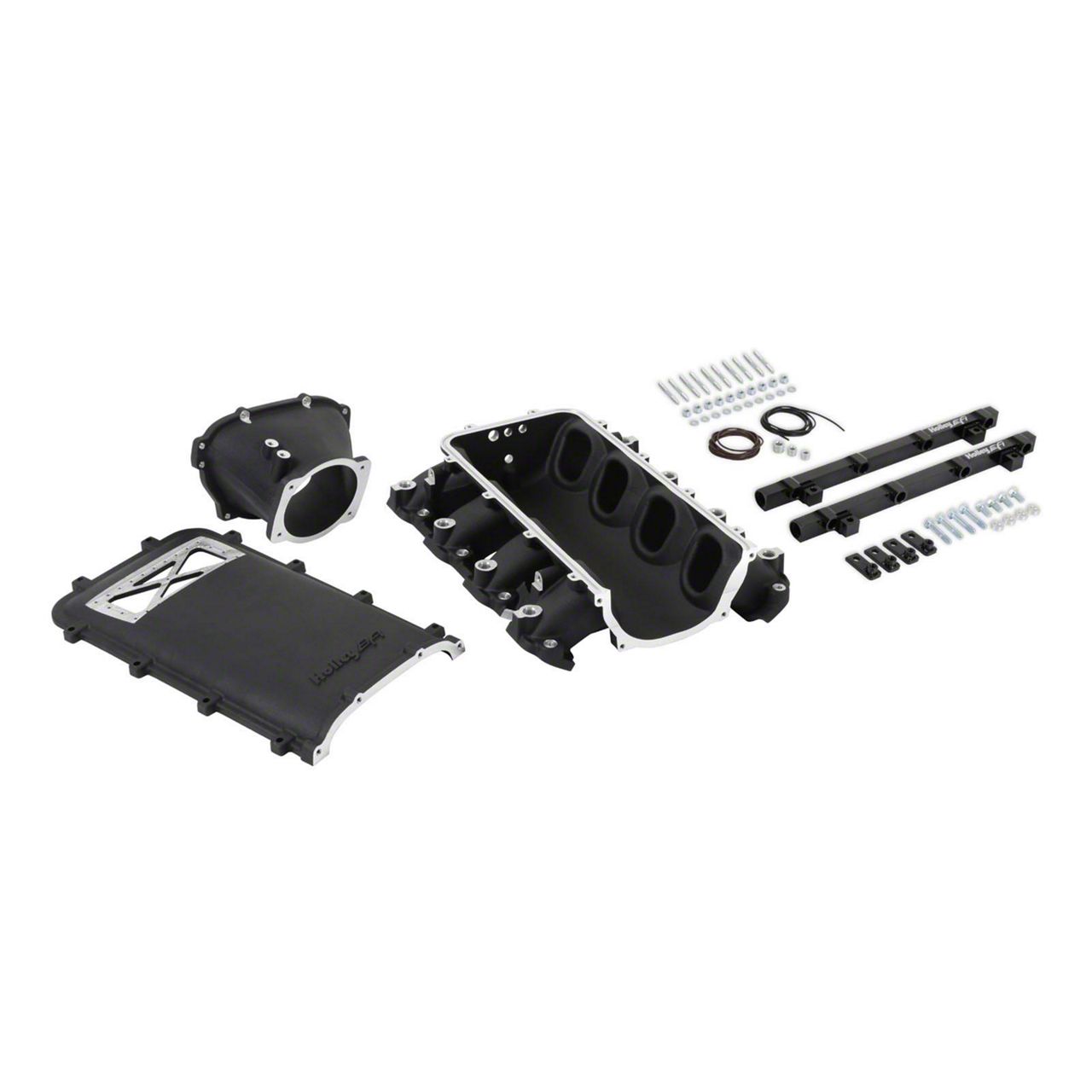 Engine Performance Upgrade. The Holley EFI Ultra Lo-Ram Intake Manifold Kit and Port Injection Fuel Rails (Black) is an exceptional performance upgrade for your engine. This intake manifold is designed to deliver maximum power and torque gains for high-performance engines. The included port injection fuel rails are specifically designed to work with this intake manifold. They ensure a steady and reliable fuel supply to your engine, enhancing its performance and efficiency. The fuel rails are also designed to be compatible with a variety of fuel injectors, allowing for flexibility in tuning your engine.