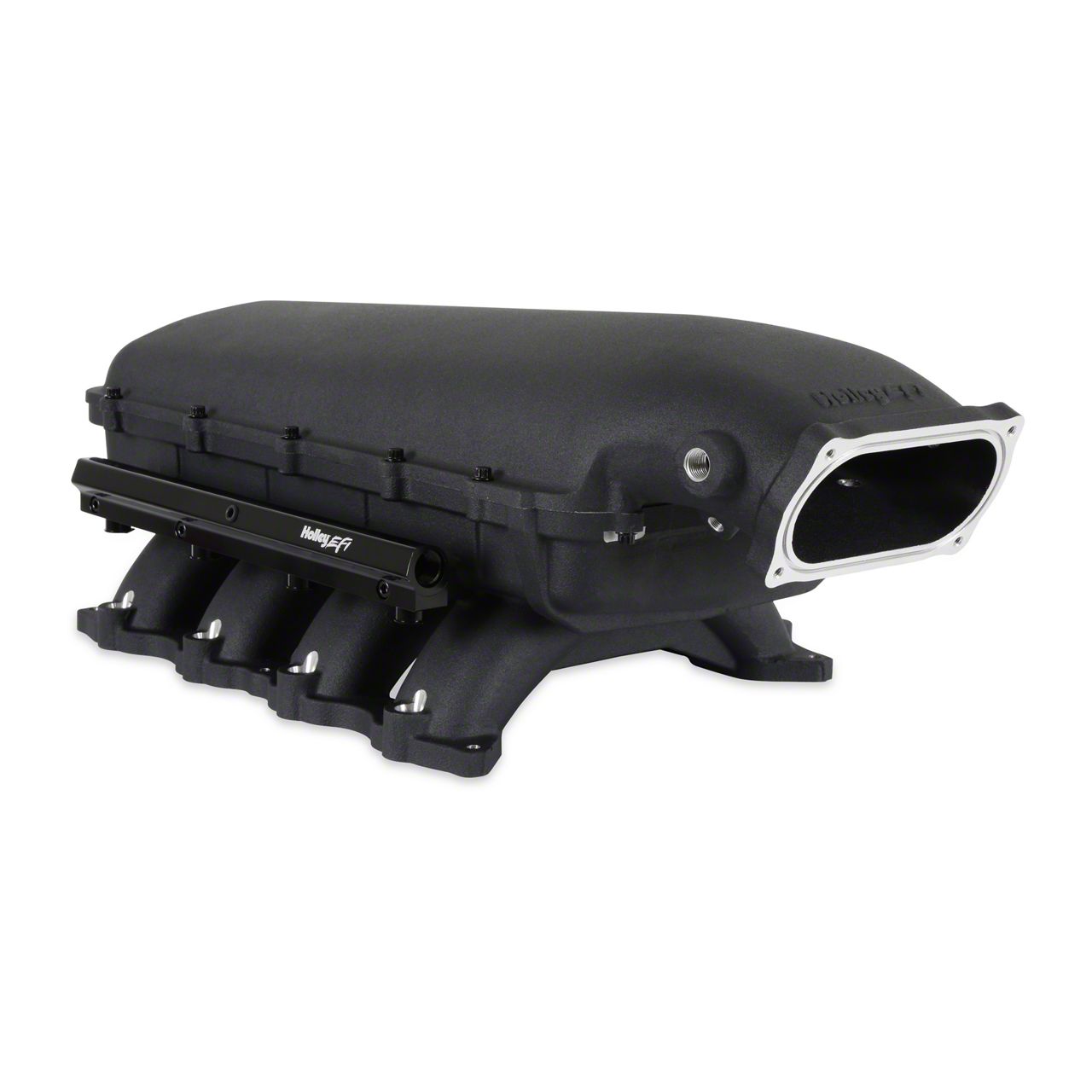 Maximized Engine Power. Boost your engine's power and efficiency with the Holley EFI Hi-Ram Intake Manifold with 2007-2014 GT500 Throttle Body Mount. Its innovative design optimizes air flow, allowing for improved combustion and increased horsepower. By maximizing air intake, you'll experience a noticeable boost in acceleration and overall engine performance.