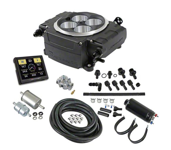 Revolutionary Fuel Injection System. The Holley Sniper 2 EFI with Inline Pump; Black, is a cutting-edge solution designed to bring the efficiency and performance of modern fuel injection to your vehicle. At the core of the Sniper 2 EFI system is a self-tuning Engine Control Unit that automatically adjusts to deliver optimal fuel and air mixture. It's designed for ease of use, requiring minimal input from the user, making it ideal for those new to EFI systems. The system includes a user-friendly, integrated touchscreen display that provides real-time data monitoring and system diagnostics. This feature is invaluable for keeping tabs on the health and performance of your engine.