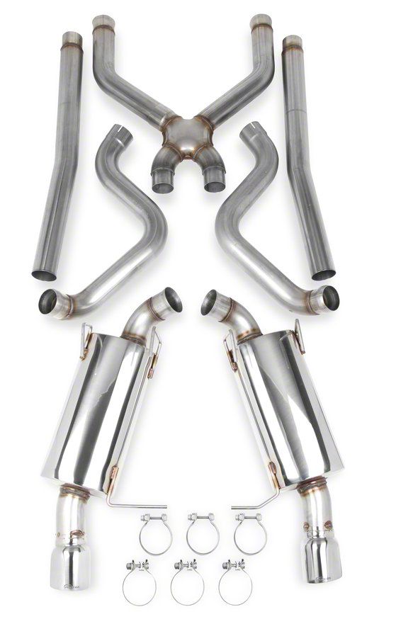 304 Stainless Steel. Are you looking for an exhaust system upgrade that will bring a unique look to your 2011-2014 Ford Mustang? Look no further than the Hooker BlackHeart Cat-Back Exhaust with Polished Tips. This high-quality, 304 stainless steel cat-back exhaust is ideal for the Mustang enthusiast who has an eye for class and power. It incorporates two dual mufflers and polished tips to create a natural finish that fits in with any custom style or take, while still providing signature Hooker strength and durability.