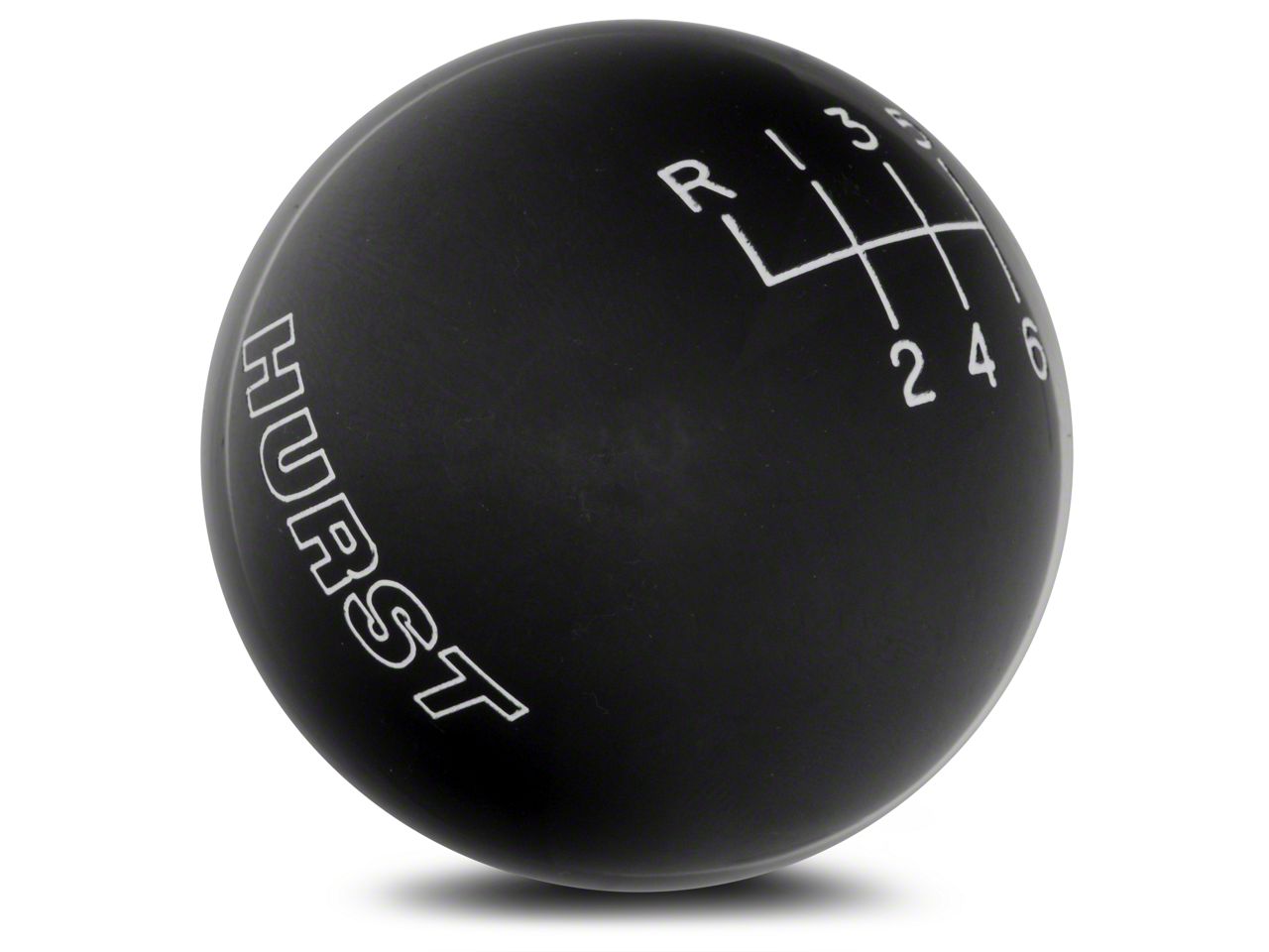 Old-School Cue Ball Styling. Add customized style to your 2015-2026 Ford Mustang GT, EconBoost, or V6 with a Hurst Classic 6-Speed Shift Knob - Black. The retro cue ball styling of this white shift knob has black engraving and features a 6-speed easy to read 12mm X 1.25 thread pattern and Hurst logo on both sides. Installation is quick as this knob is made for manual transmissions with the stock handle.